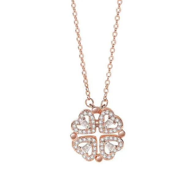 Magnetische 4-in-1 hart- & klavertjevier-hanger ketting – Sieraad met zirkonia